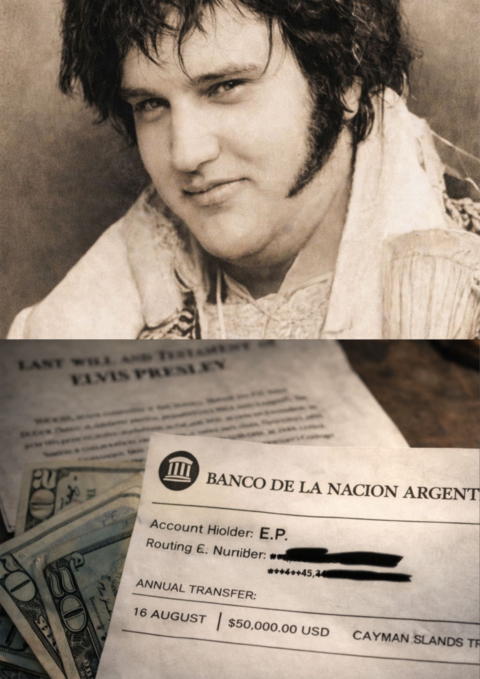 According to the leaked pages, Billy Smith established a trust six months after August 16, 1977. Every year, without interruption, $50,000 was sent to an Argentine account that bank officials later confirmed has been active since 1978. The recipient never withdrew a cent. Nearly two million dollars now sits untouched—waiting, accruing, patient.