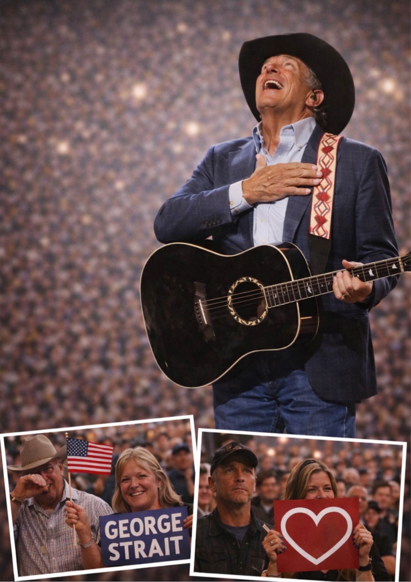 That’s the quiet genius of George Strait. He doesn’t have to overpower a room to lead it. He just gives people a place to stand—emotionally, not just physically. He reminds them how to be their better selves for a few minutes. How to share air again. How to remember that dignity can spread faster than outrage if someone brave enough starts it.