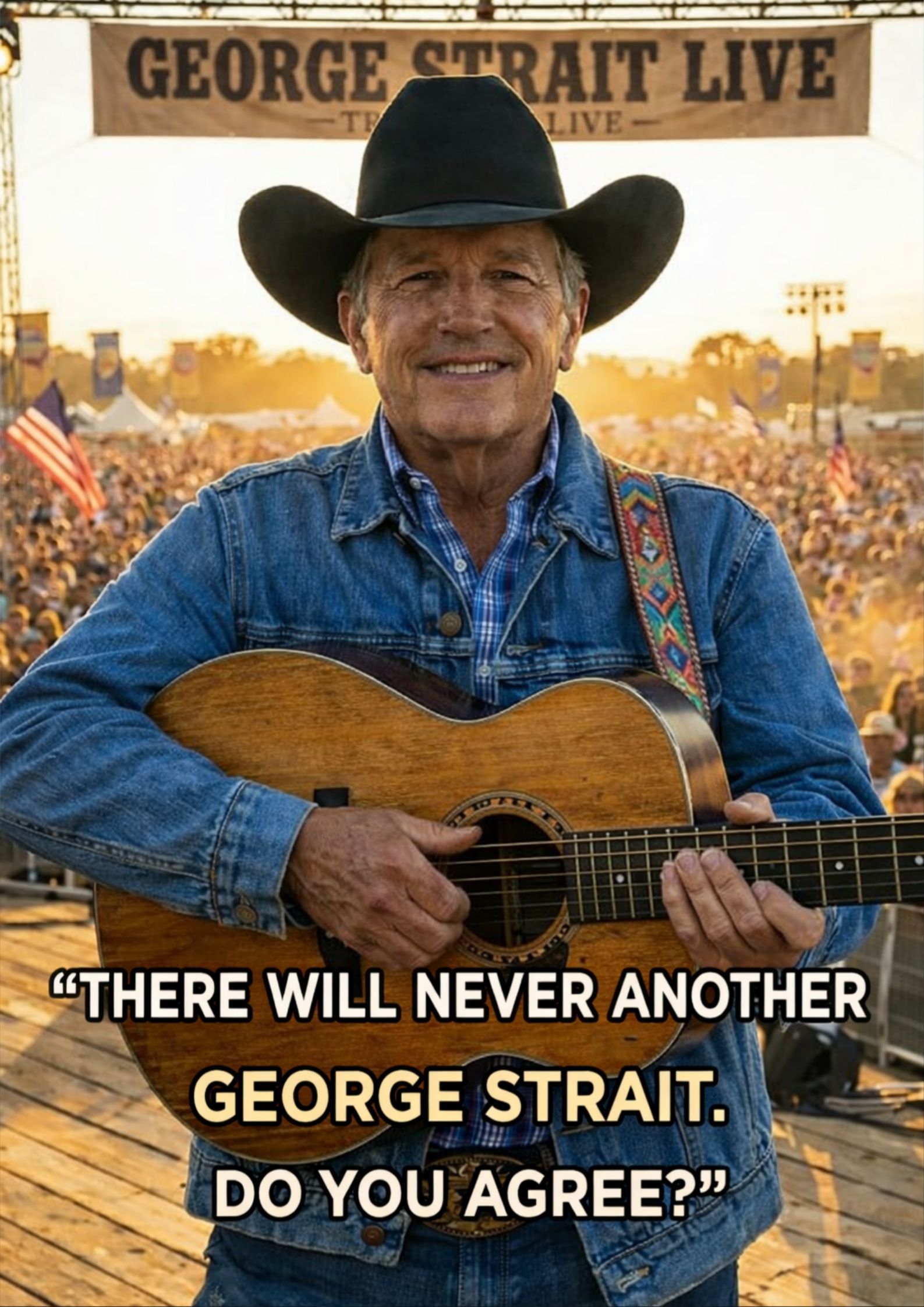 There was no cinematic entrance. No booming voice to announce the man of the hour. No countdown, no dramatic lighting cue designed for a clip to travel faster than the music itself. Strait simply walked out the way he always has—calm, steady, unhurried. Cowboy hat. Guitar. That familiar posture that somehow tells the truth before the first word is sung: I’m here to do the work.