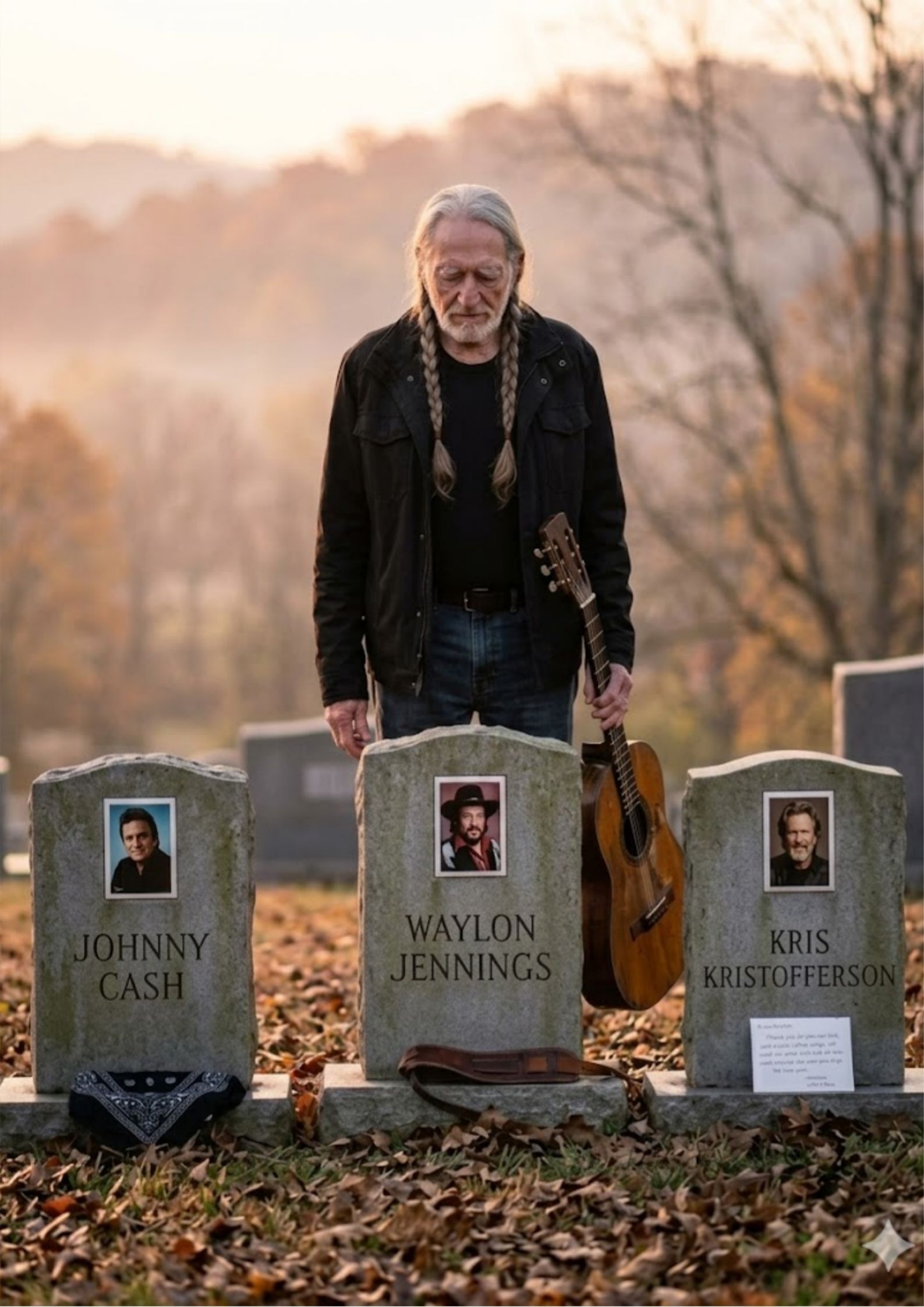 At 92 years old, Willie Nelson still tours, still sings, still steps beneath lights that once belonged to all four men. But according to a story now moving quietly through the hearts of country fans, there was one autumn morning when Willie was not heading toward another arena.