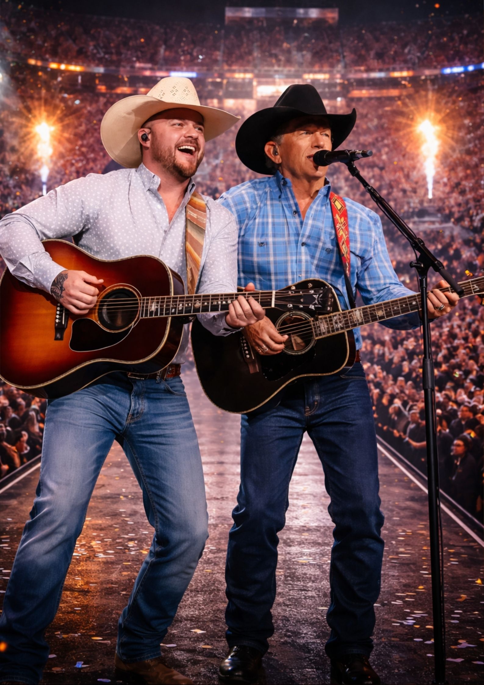 His remark about George Strait was especially telling. There was humor in it, certainly, but also reverence. He was not trying to diminish the legend who came before him. He was inviting him back into the story. In a genre that often honors lineage, influence, and humility, that kind of gesture matters. It turns competition into tribute. It suggests that for Johnson, breaking a record is not about replacing a hero, but about joining a tradition strong enough to hold both men.