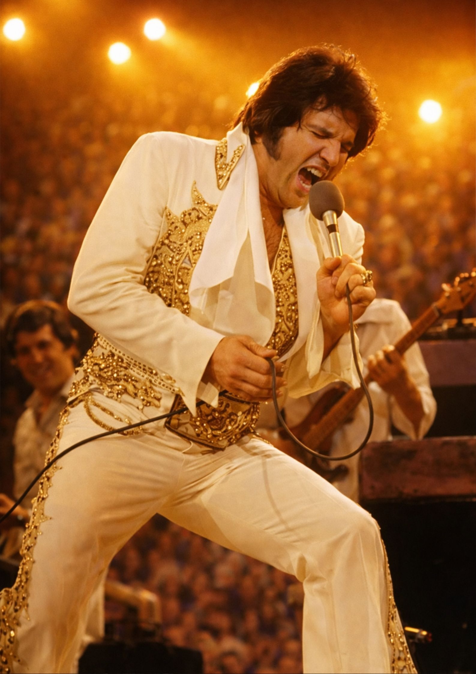 Elvis’s voice in Omaha wasn’t the effortless, unstoppable engine fans remembered from earlier years. It moved differently—sometimes strained, sometimes strong, always unmistakably his. Each lyric seemed to arrive with weight, as if every note carried the invisible burden of decades spent chasing perfection, giving everything, and being asked for more.