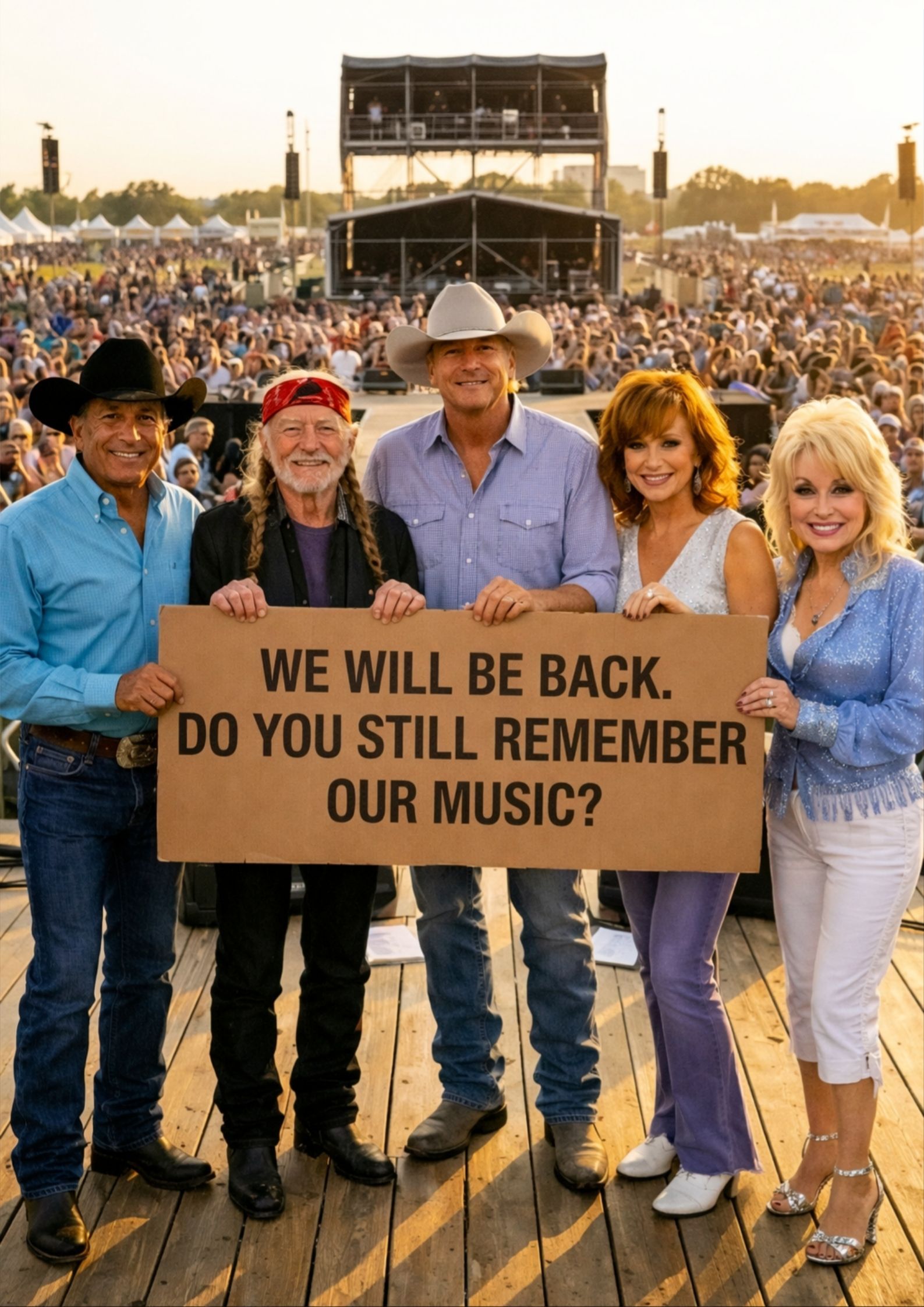 For years, people have argued about whether country music has changed too much, whether it’s lost something, whether the heart has been replaced by a formula. But in a night like this—whether real or imagined—the argument ends. Because the answer is standing there in five living silhouettes.